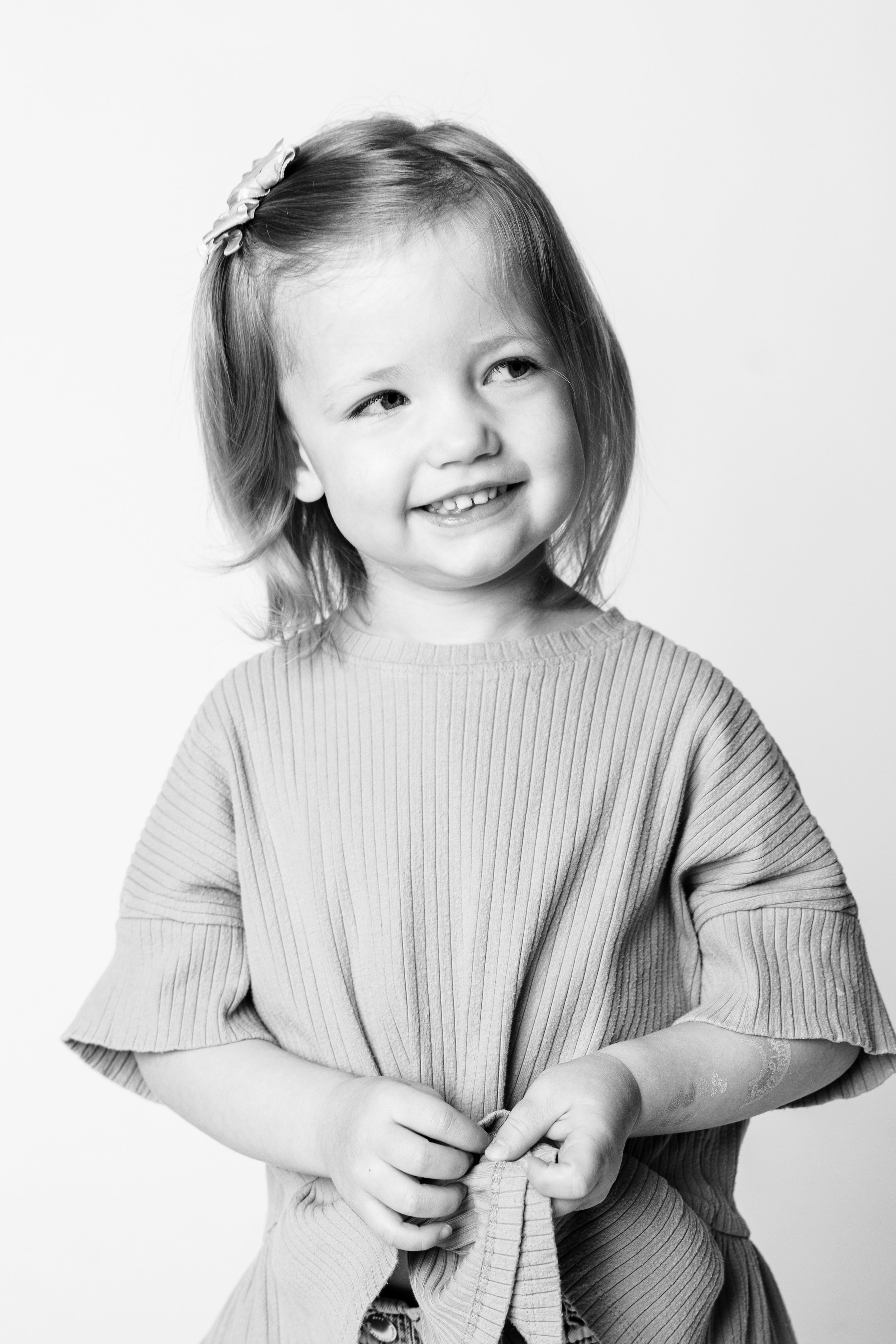 Our classic look. Timeless black-and-white portraits that focus purely on expression, personality, and the quiet beauty of childhood. These images strip away distraction and allow each child’s individuality to shine through.